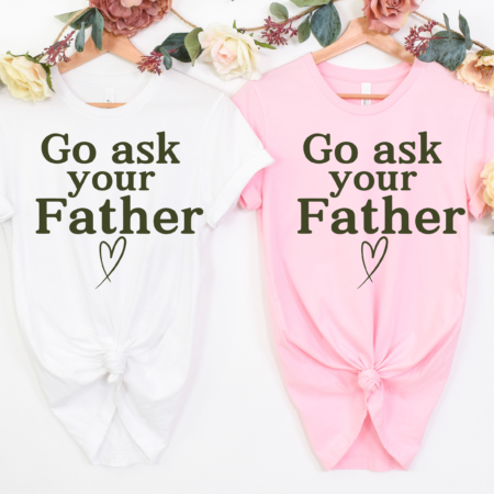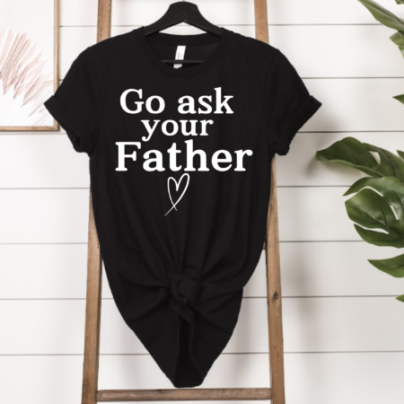 Embrace the lighter side of parenting with the “Go Ask Your Father” T-shirt. Whether worn for a casual outing or as a thoughtful gift, its blend of style and wit is sure to bring smiles. Choose from various sizes and colours to suit your preference and order today to add a touch of humour to your wardrobe!
