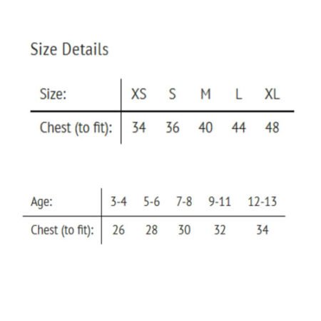 | Size | Child 1-2 yrs, Child 3-4 yrs, Child 5 -6 yrs, Child 7-8 yrs, Child 9-11 yrs, Unisex Small, Unisex Medium, Unisex Large, Unisex XLarge, Unisex XXL, Unisex XSmall |